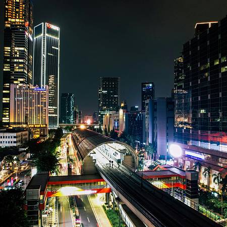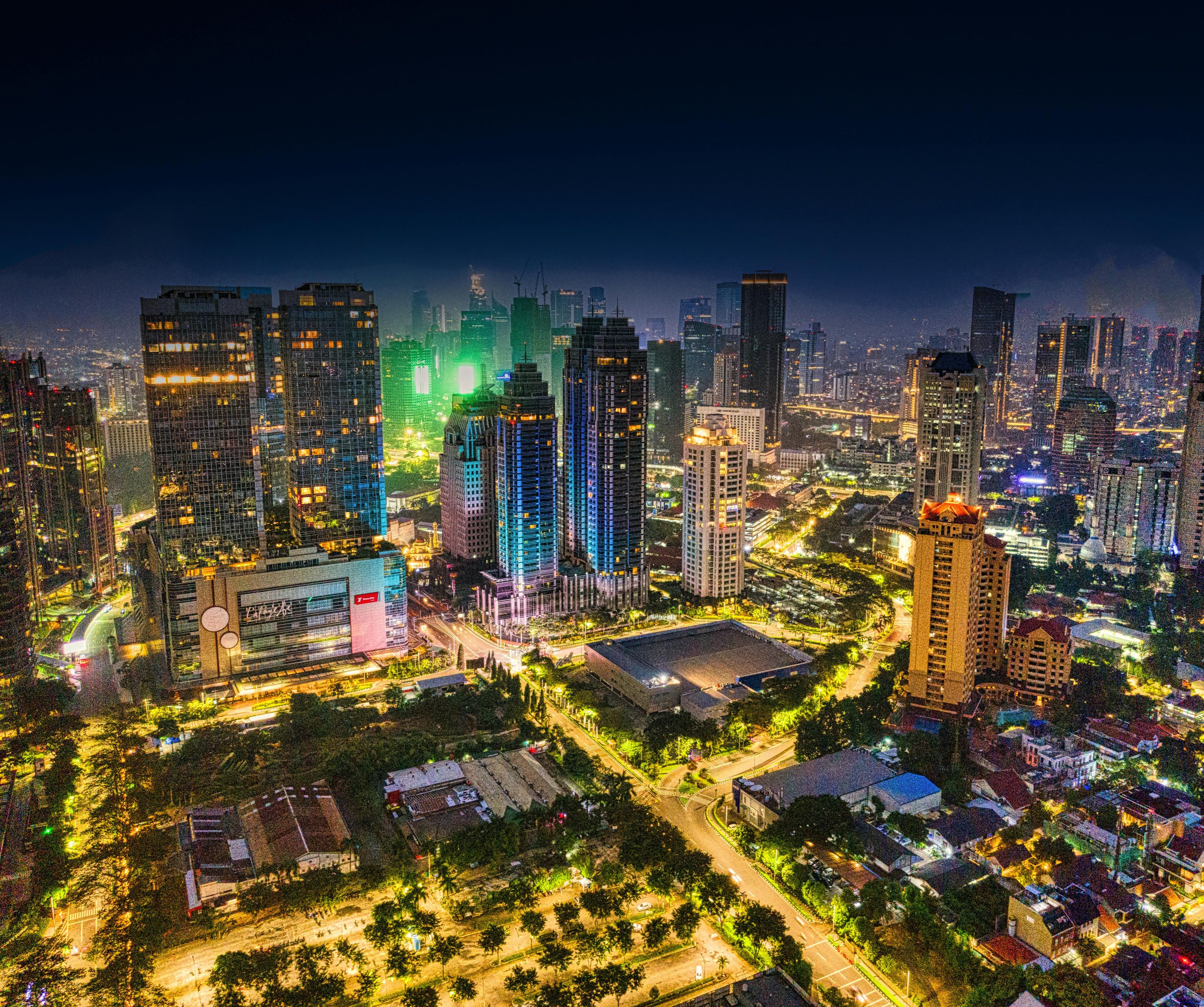 Jakarta: A metropolis with night lights, luxurious rooftops, and a modern urban atmosphere.